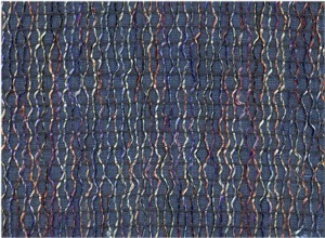 The blue filament rayon floats give an added dimension, breaking up the strict vertical look of the warp floats.